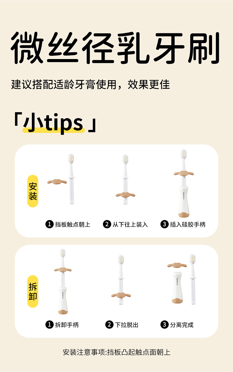 Beeshum贝斯哈姆儿童牙刷婴儿柔软波浪头毛乳牙刷 棕色