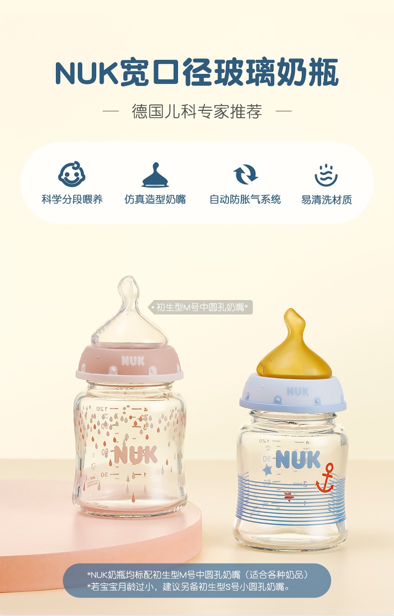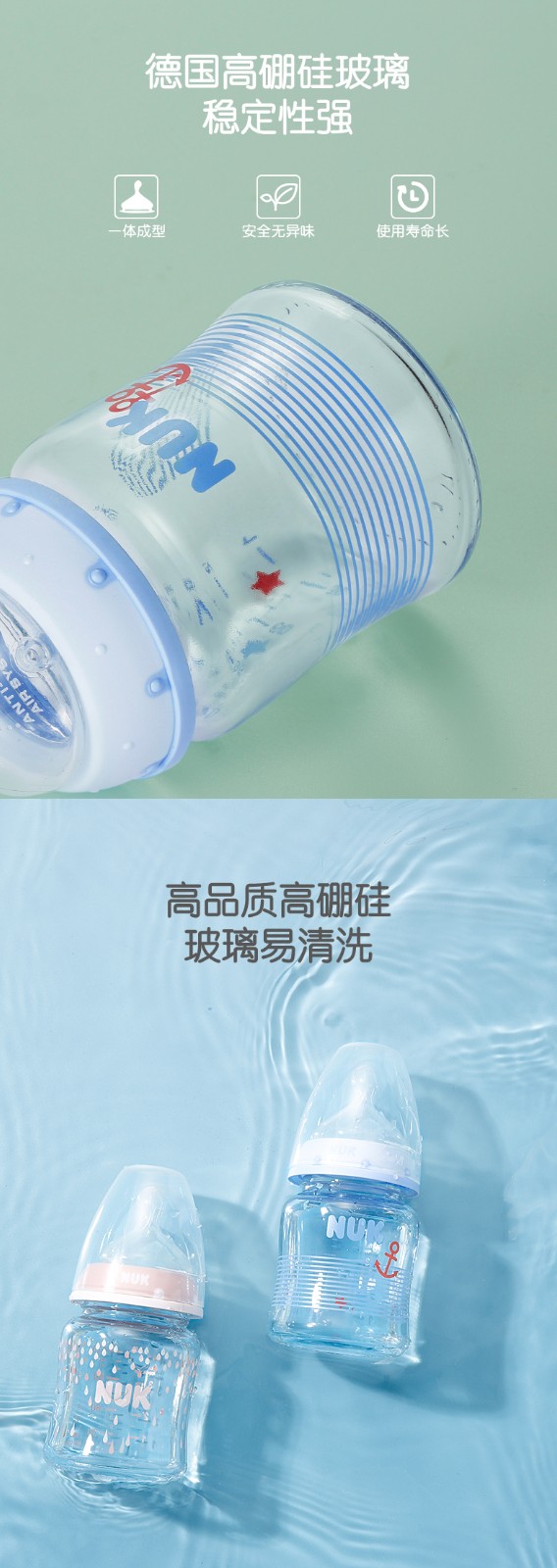 【脏污破损,介意慎下】德国NUK婴儿新生奶瓶0-6个月玻璃奶瓶120ML
